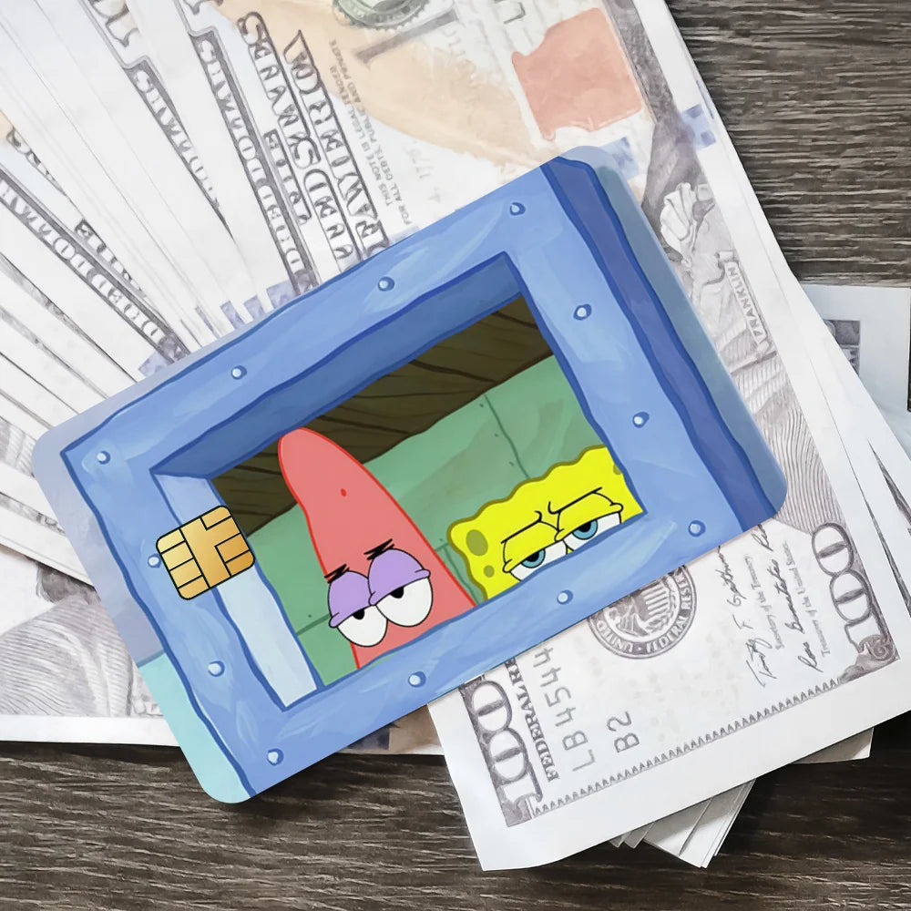 Personalize and protect your cards with this 4-piece set of Bikini Bottom-themed S-Sponge-B-Bob K film skin covers — perfect for credit, debit, bank, and bus pass cards with cute cartoon designs!