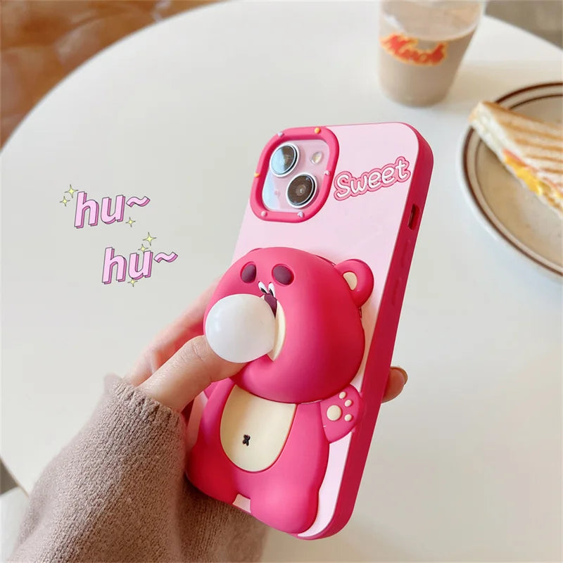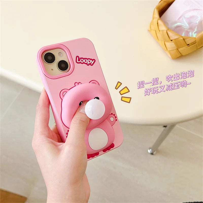 🧽 Cute Cartoon Capybara SpongeBob Patrick Star Stitch Soft Silicone Blowing Bubble Cover – For iPhone Series 📱✨