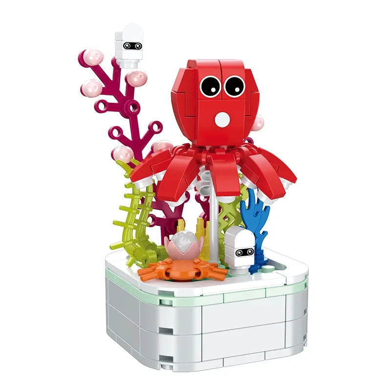 Create a charming mini garden with this adorable building block set featuring flowers, animals, insects, and a cicada bonsai potted plant. Perfect for kids to build, learn, and decorate their space!