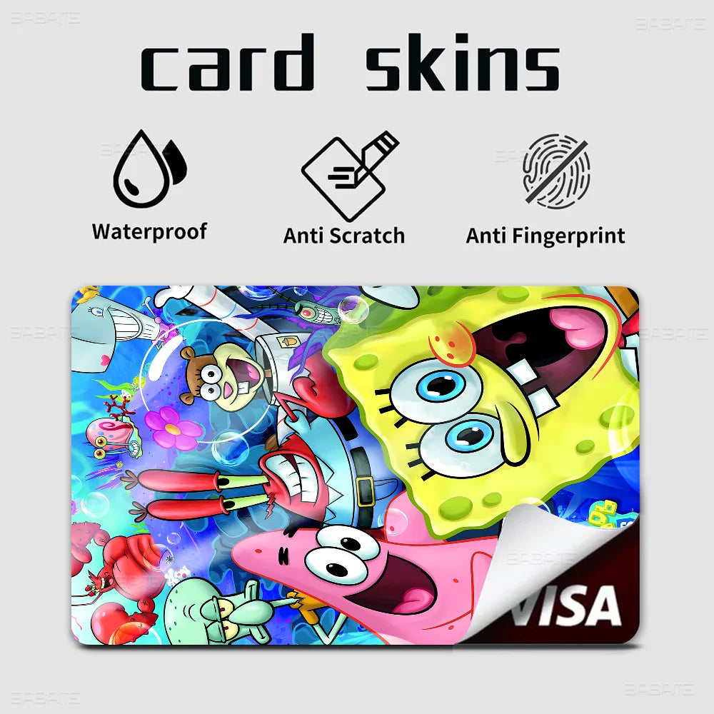 Give your big credit or debit cards a fresh, fun makeover with these 2024 Cute Sponges and B-Bob anime cartoon skin stickers — stylish and protective film tape cases for the front side of your cards!