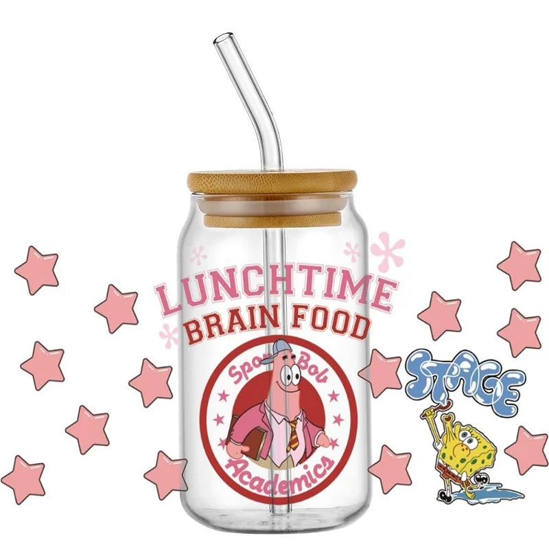 Miniso Lovely Cartoon SpongeBob 16oz Libby UV DTF Cup Wrap Transfer Sticker Decals Custom Design 3D Waterproof Cup Sticker